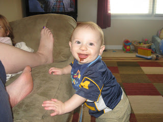 Since becoming pretty good at walking behind things Max has a new job of pushing Noelle around on her "ride". Sometimes she uses her feet a little too much and quickly darts forward leaving Max desperately grabbing for air and then falling. They both seem to have a great time and I'm excited they have begun to truly play together and enjoy each other.